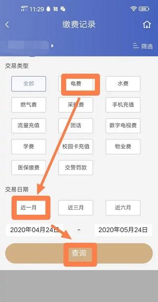 4、选择“交易类型”和“交易日期”之后,点击【查询】即可。