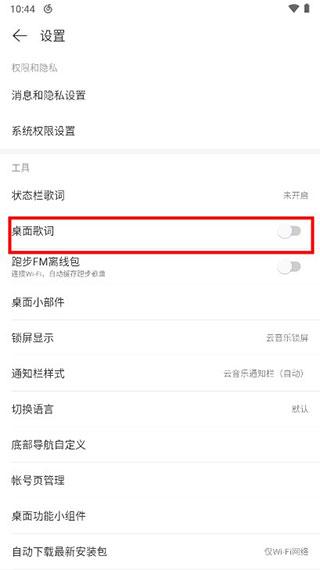 3、然后在设置页面里就可以看到 桌面歌词。