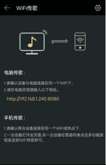 2、一台设备打开此页面,另一台设备在歌曲列表点击多功能按钮发送到WiFi传歌即可。(APP内WiFi传歌界面的右上角设置按钮可自己选择歌曲保存路径)。