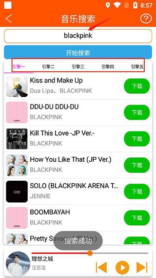 2、也可以在搜索框中搜索歌手或者歌名播放,并且还提供了多个引擎的搜索结果;