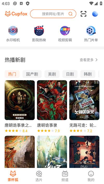 茶杯狐app是一款影视的追剧神器,它涵盖了从国产剧到美日韩英剧种的追剧指南,用户可以在这里查看到电视剧的简介以及一些剧评,还能直接前往资源页面观看。影院热映功能里面会展示正在热映的影片,包括内容简介和预告片,帮助用户快速判断是否值得买票观看。热门片单内还会给用户推荐多种系列类型的电影,省去用户自己找电影的麻烦!茶杯狐app还拥有水印相机和视频剪辑功能,用户可以一键快速拍出自定义水印照片和剪辑视频,感兴趣的朋友可以来下载体验!