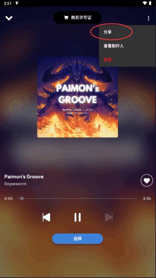 轻触Share[分享]后,您将看到一个对话框,提示您以多种方式分享曲目。选择您想要共享曲目的方式,您的手机应该会打开相应的应用程序。