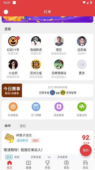 1、在本站免费下载安装该app,打开直接进入首页,最上方的一栏就是足球情报专家,还有今日赛事的显示。