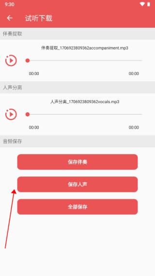 5、即可将人声与伴奏分离,选择需要的进行保存