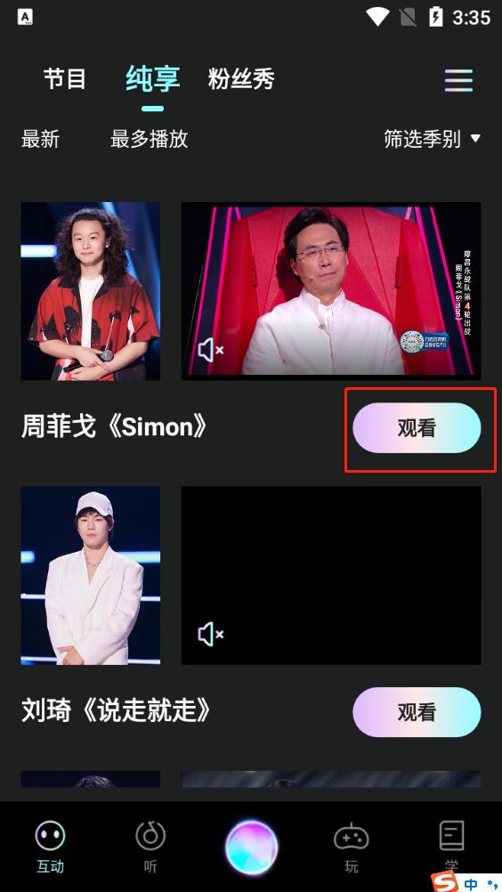 相信大家一定都听说过“中国好声音”这档节目吧,它可谓是火爆全网的一款音乐综艺选秀节目了,近几日在抖音也是推出了很多好声音导师的短视频,2024年的导师阵容也是非常震撼,其中包含了:薛之谦、刘宪华、潘玮柏以及周华健,开场定能让你大开眼界,为了便于大家可以第一时间看到2024年的好声音,今天小编就为大家带来了中国好声音app,这是一款集音乐短视频上传、音乐互动等功能于一体的视频播放软件,还有音乐试听、视频点播、微博分享等多项功能,提供了每个季度中国好声音的全部节目,包括盲选、导师争夺和决赛等环节,用户可以在应用中观看所有的比赛视频,并为自己喜欢的选手投票。