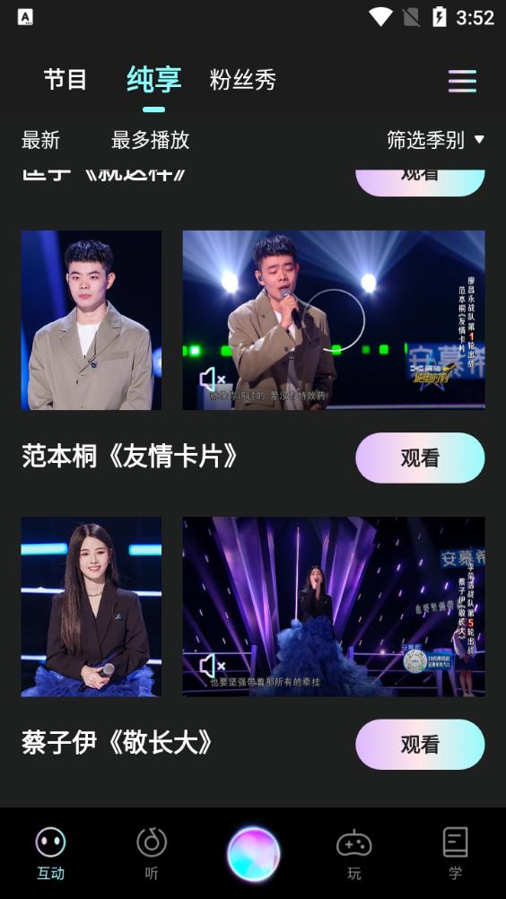 此外,它还提供了选手的个人资料和介绍,用户可以更深入地了解每一位选手的背景故事、音乐风格和表演特点等信息。除此之外,在中国好声音app中,用户还可以参加各种有趣的互动活动,与其他音乐爱好者分享自己的看法和心得,互相交流音乐体验,增加社交和娱乐体验,让你的音乐生活更加丰富多彩,如果你是一位热爱音乐的用户,那一定不要错过这款软件~