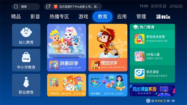 四.完成安装后,打开当贝市场,里面的应用就可随意下载了。比如想要下载电视直播软件,只需搜索输入“DSJMD”就可找到对应安装包了。