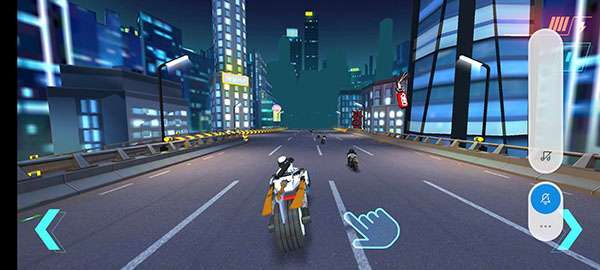 1、游戏中有左右按键,可以操纵摩托车左右方向;
