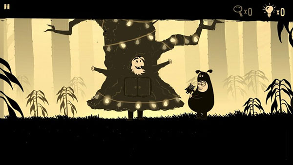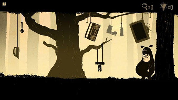 6、将树枝左边的绳子拿下来,把它绑在右边的破败的秋千上,就可以将秋千修好。进入下一个场景。