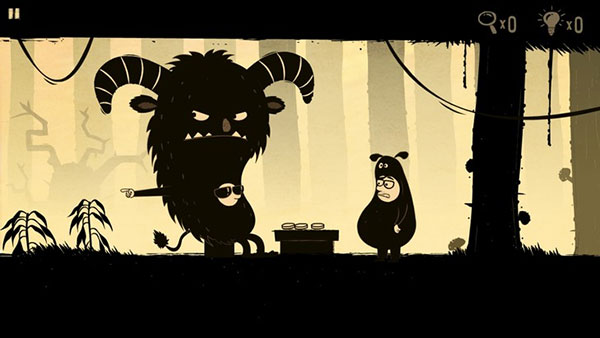 8、将玩偶放到秋千上,推它俩下,它就会从上面掉下来。向右边滑动一个页面,我们可以看到另外一个秋千上的人也掉下来了,因为它在模仿前面那个秋千。我们可以从地上得到第一个金币。进入下一个场景,一直向前走。直到走到一个有剪刀的页面,同时还会在这里发现第二个金币。