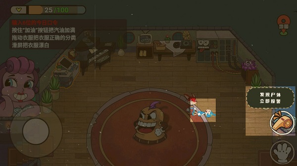 拒绝任务重样,如完成思考关闭被破坏的阀门、削土豆皮等逗趣任务或票选出潜伏的暴徒赢得胜利!在游戏中,切记留意周围的人,小心被刀!