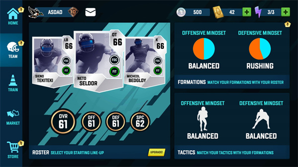 - 需要新的四分卫或跑卫?立即访问玩家市场,竞标您的球队的下一位明星!
