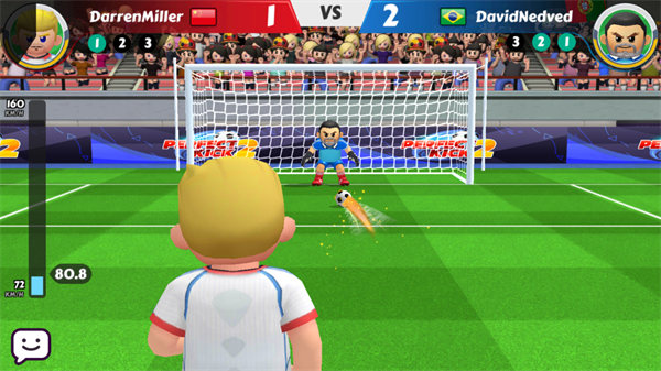 点球达人2官方正版是一款可玩性极高的足球竞技手游,英文名叫Perfect Kick2。游戏采用了精美绚丽的UI设计、美轮美奂的卡通界面画质,以1V1的足球互相射点球作为主要玩法,规则也很简单易懂,5局3胜,双方会轮流进行攻防的交替,最先到达进球数的一方获胜,让玩家在比赛过程中可以感受更真实的球场竞技效果。此外,游戏中还加入了等级和道具系统,通过等级上升,获得XP,让你的球员变得更加强大,随后你可以为球员进行技能安排,也可以更换装备,甚至还能自定义球员外貌,用古怪的外观和服装定制自己的风格。