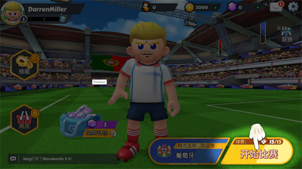 1、双击打开点球达人2最新版游戏,点击右下角的开始比赛来匹配对手;