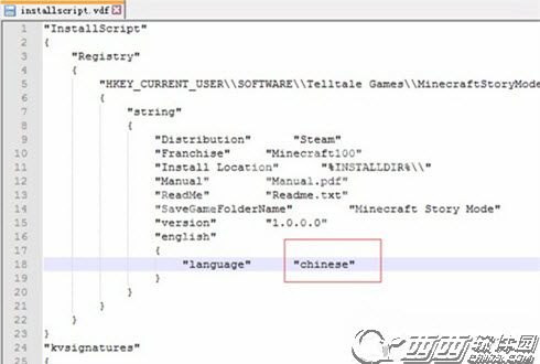 2.找到installscript,设置文本打开,往后拉,找到"language" “english”