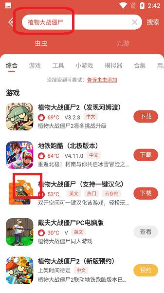 1、在上方搜索特定游戏,游戏图标旁带有“免费”、“内置菜单”等表示即免费游戏