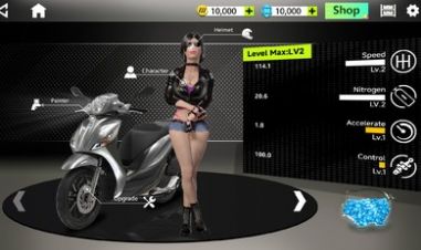 3、摩托车可以升级和定制,道具可以增强竞争能力。