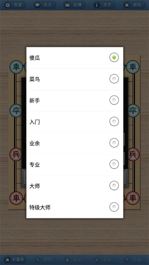 2、选择难度,级别有傻瓜、新手、入门、业余、专业、大师、特级大师,用户能够依据自身的级别开展选择,选定后就可以直接开始游戏;