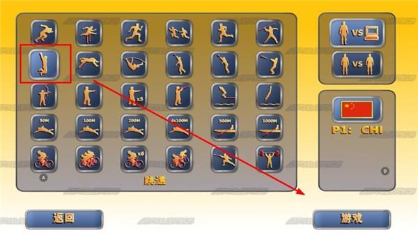 2、进入比赛之后,可以看到需要参赛的名单,来自各个不同的国家,接下来小编以跳远为例为各位小伙伴介绍一下游戏的玩法。