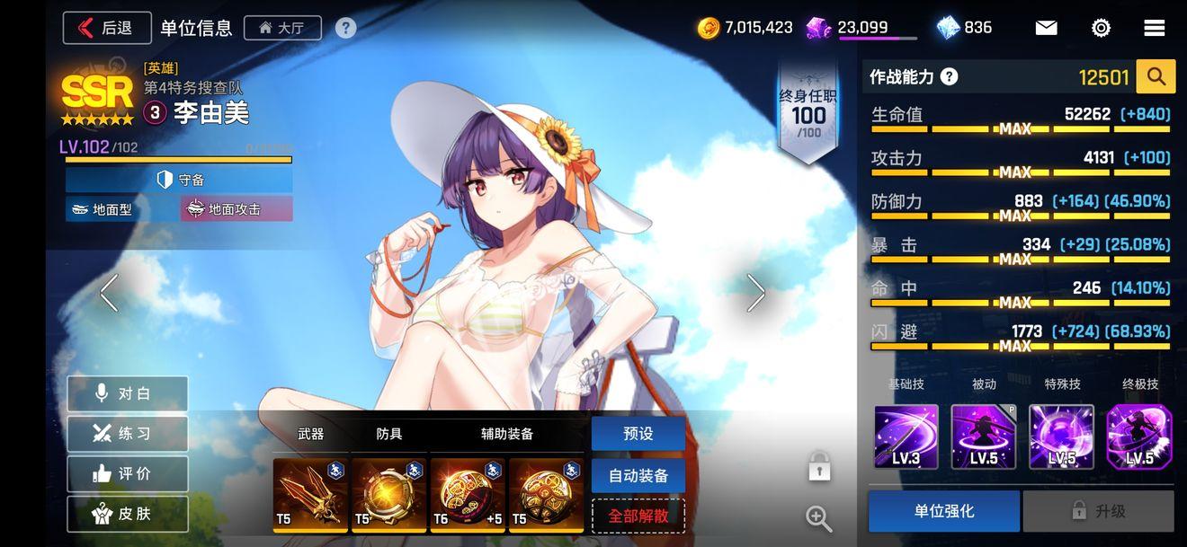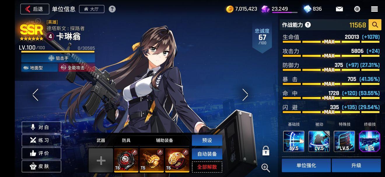 晓琳,不打PVP延缓再练,普攻必暴必定命中,PVP战术需要,主要用于克制前锋,韩服一般是用来针对凤凰以及比较肉的前锋,超导套爆伤对地拉满,基本落地3枪就能带走大部分前锋,主要是被警车飞刀严重counter,输出环境太差导致不太好上场,PVP后手留警车的太多了,4费落地可能什么事都干不了就被警车+舰船技能带走,这几乎是所有地面狙的弱点,包括触手,殿堂爆伤4/超导4/攻击4/对前锋4/爆伤4
