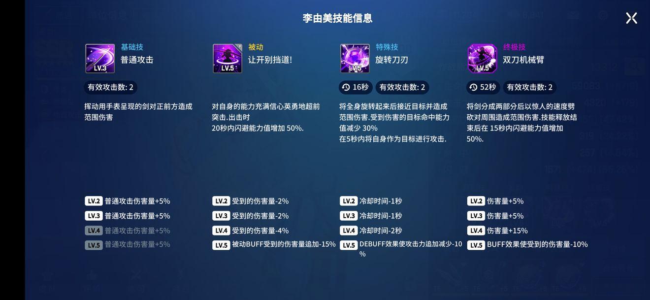 闪避盾,必练角色,PVP经常被BAN,被动20秒真女人,面板很一般,和sr盾阶差不多,但出场时提高50%闪避能力值并且附带23%减伤效果,是为数不多能够撑得比较久的前排之一,在游戏中后期仅靠单纯的面板的盾基本没有任何作为,减伤对于盾阶来说非常重要,推荐生命套/防御套,闪避套没必要,一般只有罗哥可以带闪避套玩玩,而且词条要求也极高