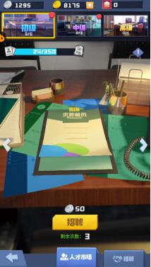 1、人才市场:人才市场分为初级、中级和高级3个等级。在任意人才市场中消耗银币进行招聘就可以随机获得一名人才。人才市场每天的招聘次数是有限制的,每天尽量把招聘次数耗尽吧,要不可能公司会面临无人可用的窘境哦。