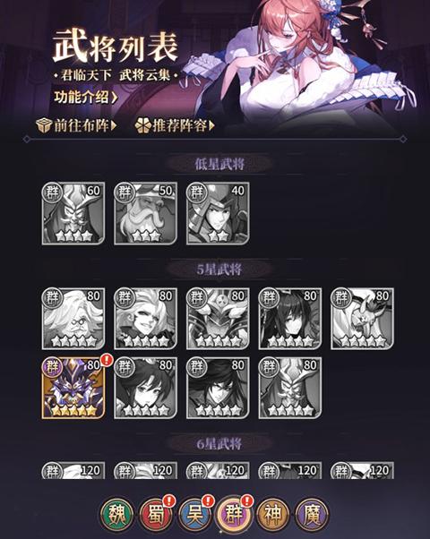 2、玩家可以通过图鉴查看各个阵营的武将。