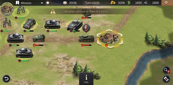 4、基于回合制操作,你可以完美的指挥这些部队,应对更复杂的战场态势,进攻或防守,由你决定!