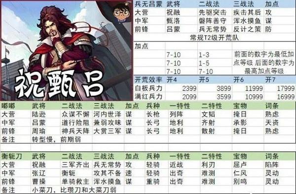 T2的第二位,就是我最常用的祝甄吕,嘿嘿嘿没错我就是夹带私货为什么大张张选择马妹,而这队选择祝融呢哎呀呀这可真是把我问住了呢祝融携带先驱,和马妹携带疾击,在低等级时是难分伯仲的一旦到了觉醒,马妹带上二战法,那不管祝融带什么都是无法和马妹抗衡的原因就在于马妹是8回合16次普攻,主战法机制太强了马妹强归强,但她的主战法加点收益很低,祝融的却很高,因此对于平民来说,这样加点更省战法经验,所以最终敲定了祝融而非马妹当然如果你更喜欢马妹,或者马妹满红祝融白板,那么请毫不犹豫的选择马妹吧!