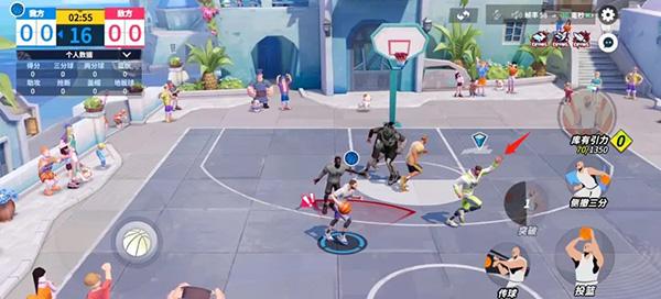 《全明星街球派对》的场地仅占用标准篮球场的一半,攻防转换时,场地上的三分线会闪烁提示,如果不出三分线,则无法进行进攻。