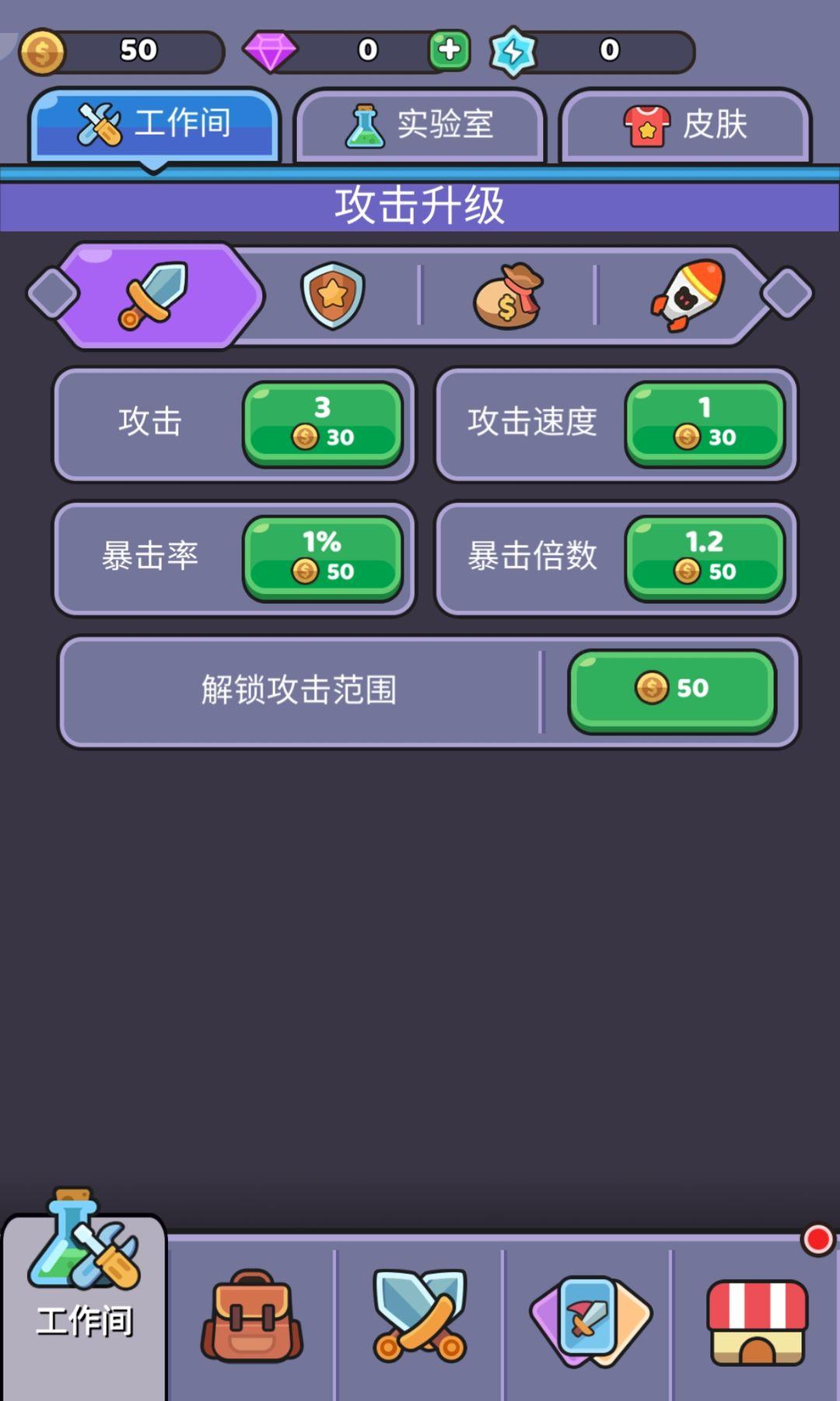 1.经典模式(难度1)。开局会让你升攻击,然后等你顺利打完第一波后会让你进入工作间,这几个都是很熟悉的,然后进入后赶紧把攻击范围点了,看到那个伤害加成(米)没有,前期你就主要升它