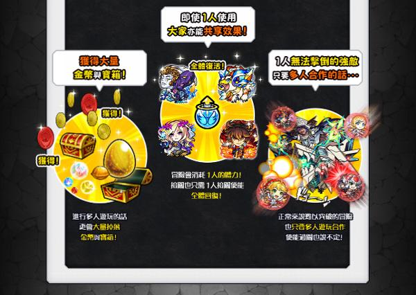 遇到自己无法打倒的强敌就赶快招集好友,一起组队或许就可轻鬆过关;