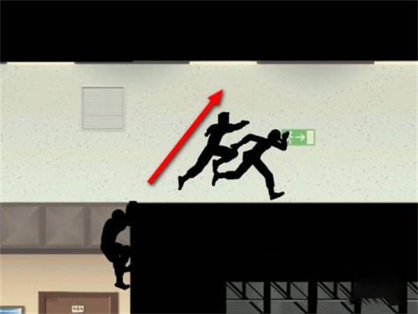 5、然后跳刀墩上再起跳(图中的动作),去到前面那个人那段路,大概到那块公告牌的位置,向下划一下屏幕去到这关的第二个隐藏场景
