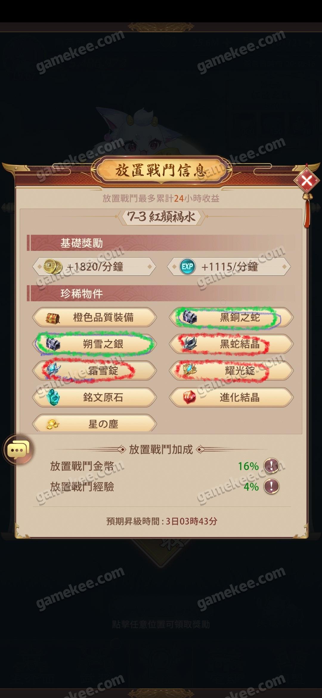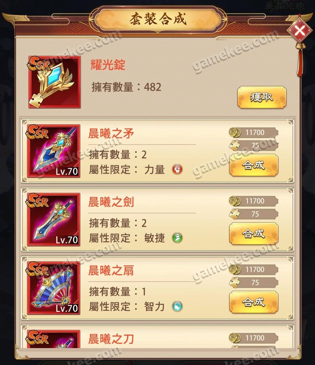 在挂机中我们可以获得R、SR、SSR装备的碎片,只需通过合成即可获得完整的装备。