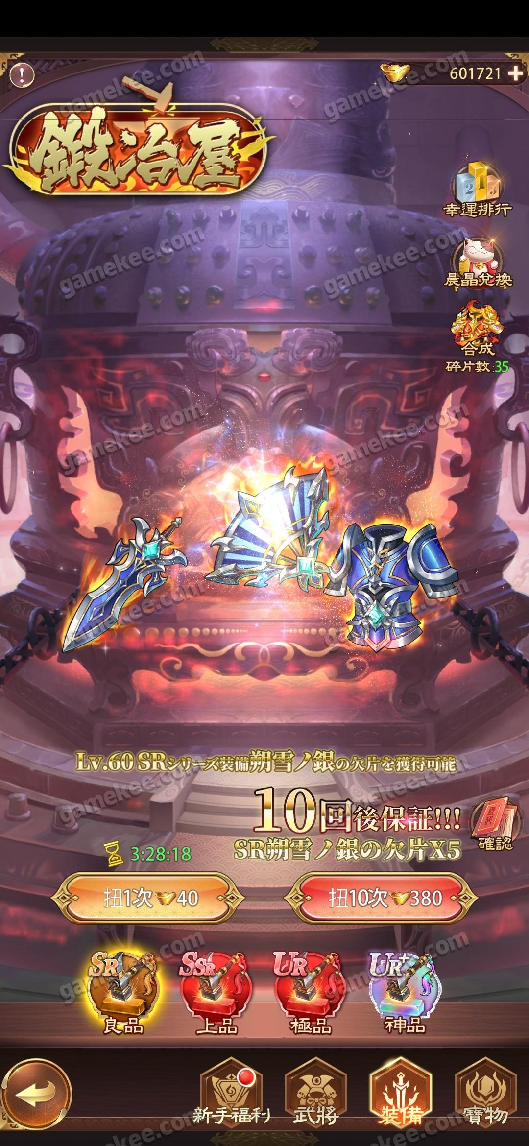 氪佬的结晶随便用,普通玩家的结晶请务必留着(欧皇可以去拼神装),当我们攒够200个结晶时可以去日轮的宝物中抽取一件SSR装备!