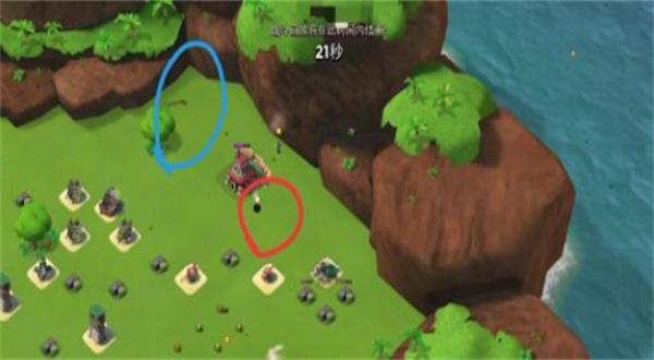 5、然后开始砸司令部,当它快落地时将引导扔至图示位置。
