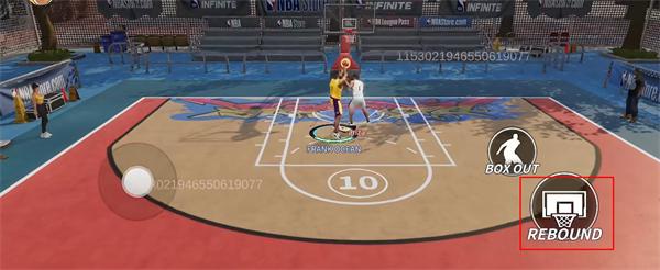 3、若对方球员未投进球时,点击“REBOUND”可以转换对篮球的控制权