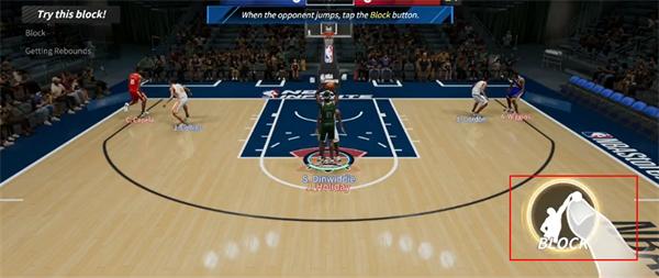 6、点击“BLOCK”,可以用手臂或者手掌击球,阻止对方球员的投篮