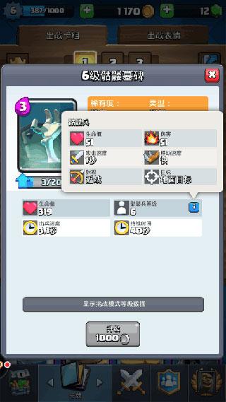 骷髅军团:它虽然生命力低,但是只需要3圣水就可以解锁,是皮卡、巨人和一部分陆地上大型卡组的克星,可以在关键时刻抵挡对面的进攻,是前期必备卡牌之一。