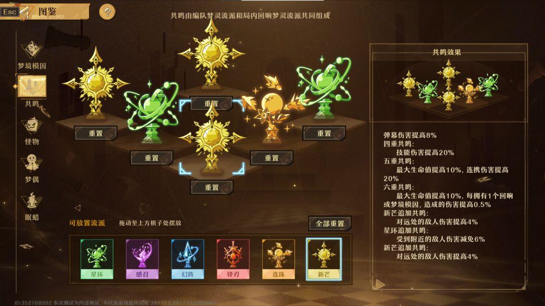 结论2:无论放多少个相同流派,追加单次效果不减少或增加,4至6重共鸣也不随之变化,局内优先追出六共鸣,追加效果根据输出或者生存选择。