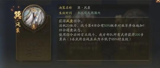 关键词二:使用指令的首次战斗所有武将获得200乡勇!