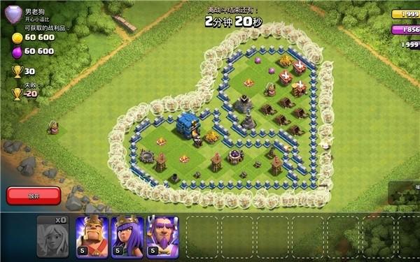 主要依靠熔岩猎犬抗伤害并且让狂暴法术帮助气球肆无忌惮的输出,这里的援兵还带了一只天狗,更能保障气球的生命值健康。亡灵和弓箭手的作用主要是负责清边和收尾,数量不定,可以根据个人喜好调整。另外,这套暴力狗球流是带了天女的,如果弓箭女皇级别太低、正在休息或者正在升级的话,可以将弓箭女皇、天使和炸弹人改成气球和少许的亡灵。