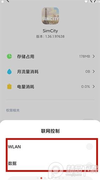 游戏前先关闭该游戏全部联网权限后,再打开游戏进入即可,可参考下图。