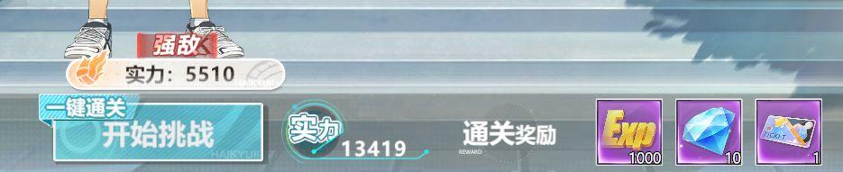 而当队伍的实力值大于关卡实力值15%时,将可以进行一键通关,无需比赛直接获得该关卡的胜利。