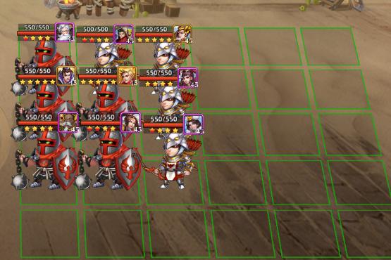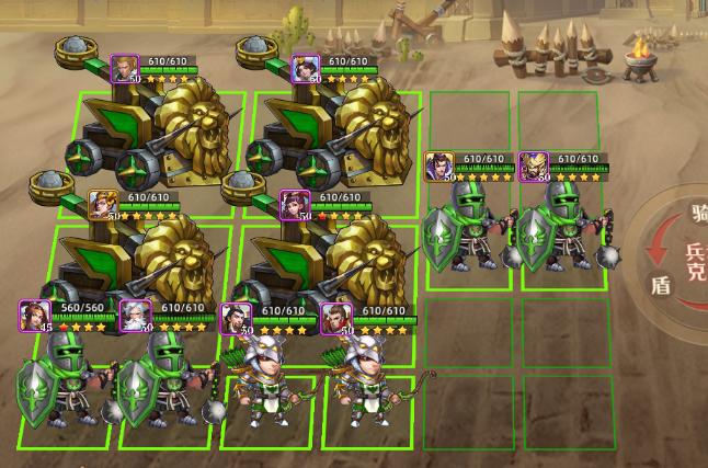 该阵型不仅在攻城战里适用,在单挑战斗,以及竞技场战斗中也很实用:能在一定程度上打赢比你战力强的正常阵容对手。