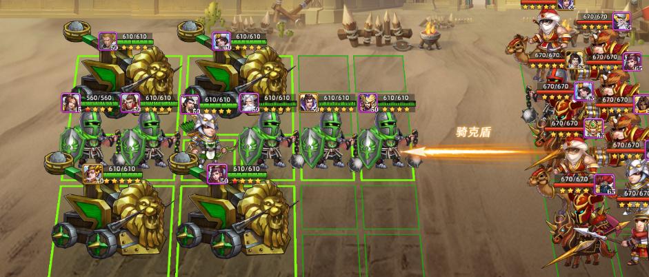 如果对方骑兵和前排较多,可以集中站位,保护后排,并且使用弓兵对骑兵进行克制性攻击。