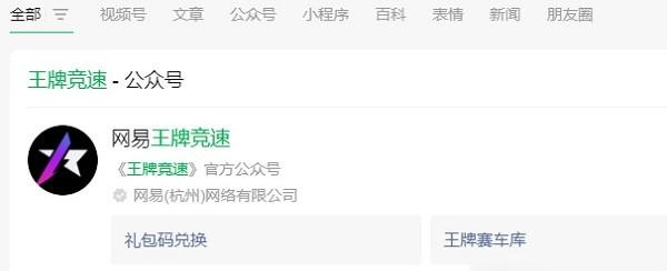 1、可以直接点击上述兑换入口,也可以搜索【王牌竞速】公众号,找到下图的礼包兑换。