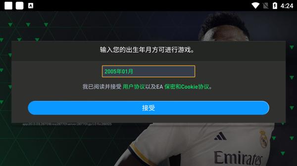 1、首先下载好FC24进入游戏,玩家首先得选择自己的出生年龄进入游戏