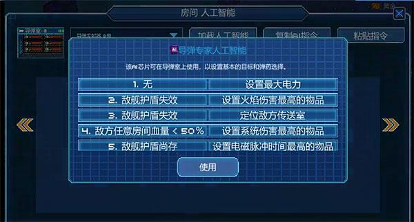 如图,你的导弹室将首先执行5号行动定位攻击敌方护盾,如果敌方护盾失效,导弹室将执行7号行动定位攻击敌方导弹室,如果敌方导弹室也被破坏了,则往下执行8号行动攻击敌方的电力室。