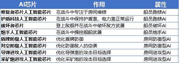 人工智能按照行动的类型主要分为电力、定位、弹药选择、能力四大类。